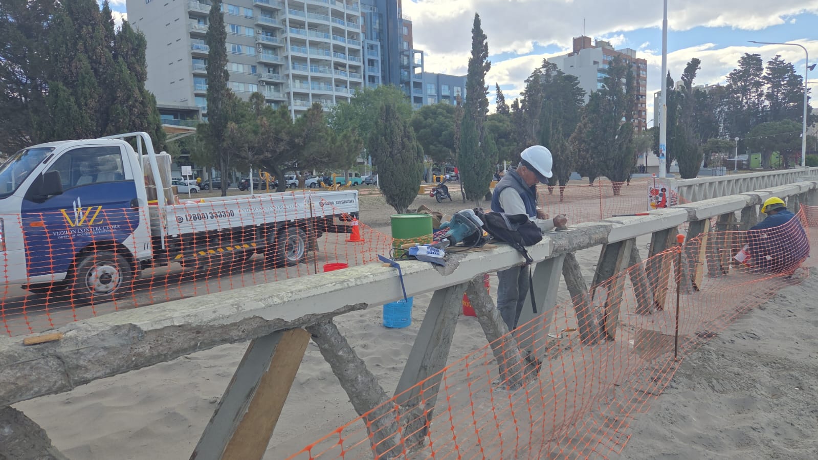 La rambla de Puerto Madryn sigue en proceso de puesta a punto de cara al inicio de la temporada estival.
