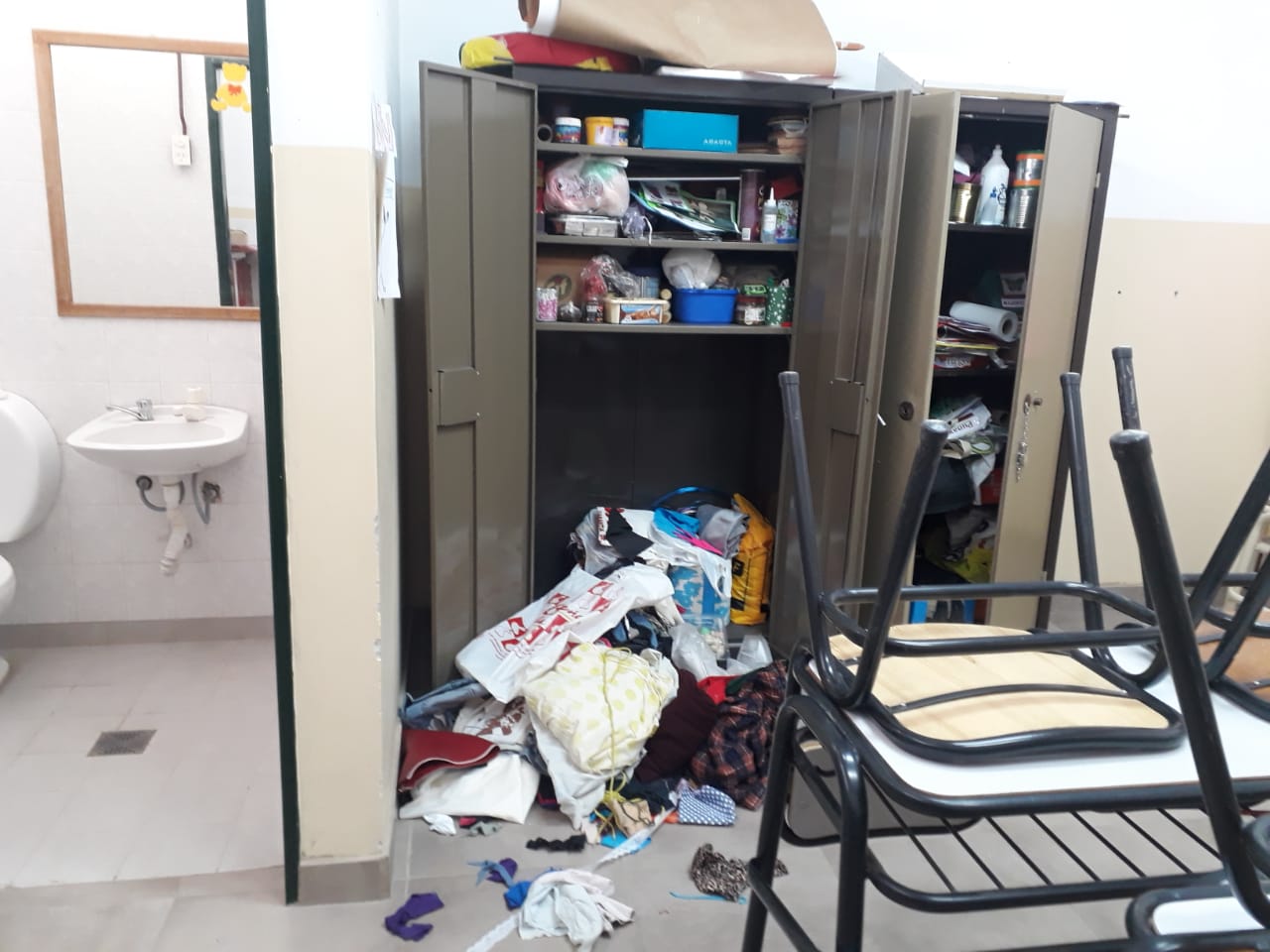 También realizaron destrozos en un aula y robaron las herramientas del taller de carpintería. En el listado de los elementos que se llevaron aparecen un taladro , dos lijadoras, una caladora, un cepillo eléctrico, un minitorno, varios destornilladores, limas, martillos, formones, entre otras cosas.