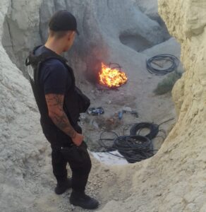 En la mañana de este jueves, personal de la Comisaría Cuarta de Puerto Madryn recuperó 500 kilos de cables que estaban siendo quemados para extraerles el cobre. Asimismo, detuvo a tres personas, una de ellas menor de edad.